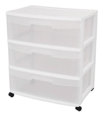 - 12-Inch wide storage box features 2 cantilever trays inside plus a bulk bottom bin